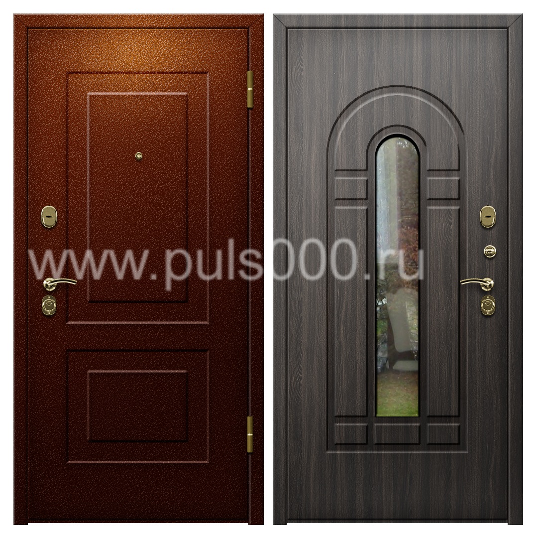 Темная входная дверь с утеплителем и зеркалом для загородного дома PR-1102